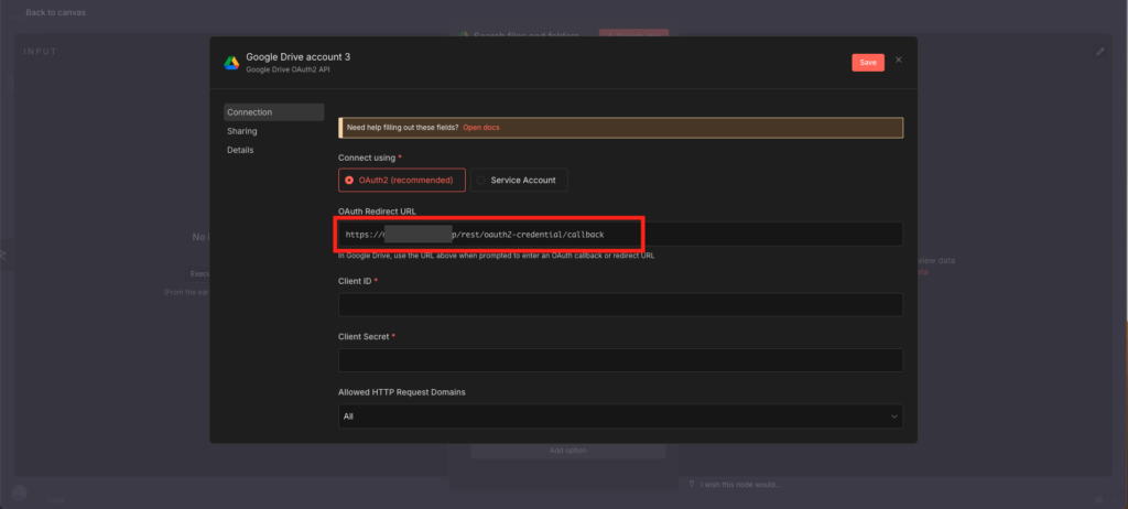 3. Copy the “OAuth Redirect URL” shown in n8n.