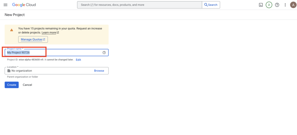 Before we can use an API, we need a place to manage it. In Google’s world, this is called a Project.