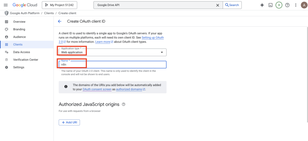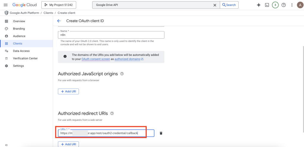 - Authorized Redirect URIs: This is often where users get stuck; this specific URI must be copied from your n8n node settings.