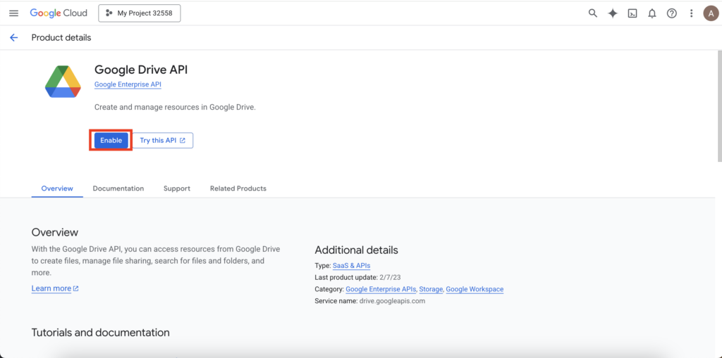 A project is like an empty toolbox. Now, we need to put the Google Drive API tool inside it.