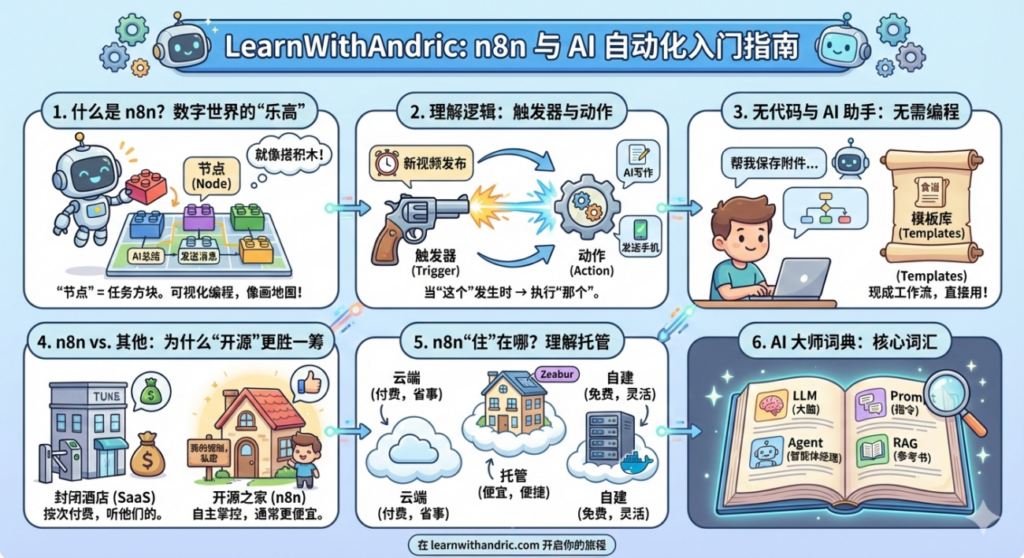 如果你是 AI 世界的新手,你应该了解的第一款工具就是 n8n。把 n8n 想象成将你所有喜爱的应用连接在一起的“胶水”,让你在睡觉时它们也能自动工作。