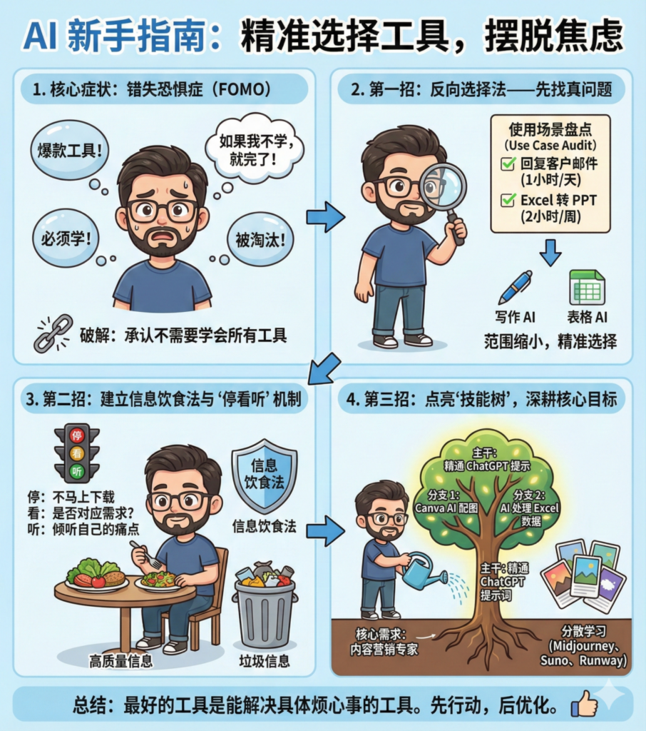 其实,这并不是你的错。导致这种混乱的根源在于我们陷入了“工具崇拜”的陷阱。今天,我将手把手教你一套反向选择法,帮助你从海量信息中解脱出来,精准找到能为你所用的 AI 工具。