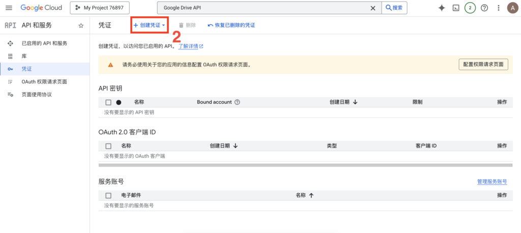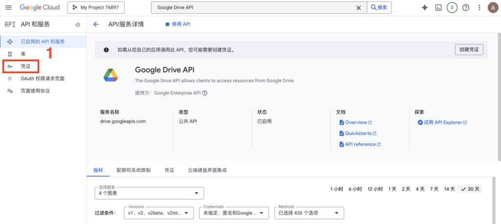 1. 进入凭证页面:启用 API 后,点击左侧导航栏中的“凭证”