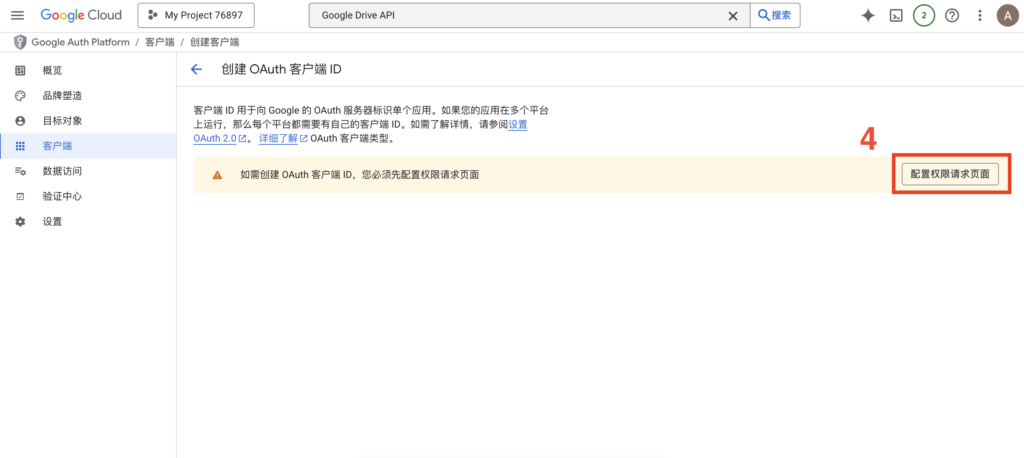 3. 配置同意屏幕(如果是首次设置):